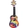 Ukulele con ponte, tastiera e corpo arcuato in fibra. Piano in legno Agathis.