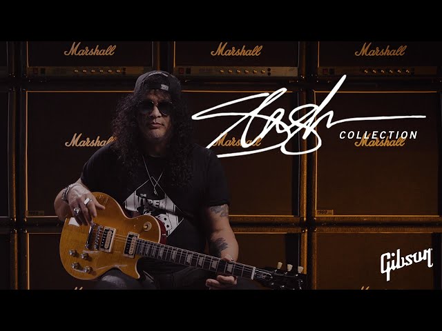 La Gibson Les Paul Slash "Victoria" Goldtop si aggiunge alla serie di chitarre Slash Collection nate dalla collaborazione tra Gibson e lo storico chitarrista dei Guns N' Roses, Velvet Revolver, Slash's Snakepit e tanti altri. La Slash Victoria Goldtop ha un body in mogano massello e top in acero con inconfondibile finitura gold. Il manico è in mogano con profilo C shape 50's Vintage con tastiera in palissandro con binding cream. Pickup Gibson Custom BurstBucker™ Alnico 2 senza cover, elettronica cablata a mano con condensatori Orange Drop. Esclusivo disegno Slash's "Skully" signature nel retro della paletta, corde esclusive Ernie Ball di Slashs e 4 plettri Slash Jim Dunlop Tortex®.