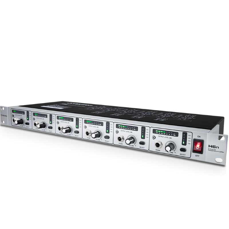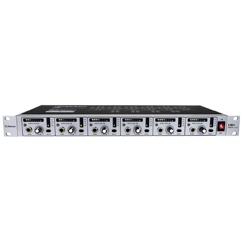 Alctron H6n è un amplificatore per cuffie professionale a 6 canali ad alta potenza, perfetto per le applicazioni professionali da palco e da studio più esigenti, è adatto a quasi tutte le cuffie sul mercato. È dotato di un indicatore a 7 livelli del volume di uscita, ingresso stereo a 6 canali, uscita stereo a 6 canali e uscita di linea a 6 canali. Il controllo del volume separato per ciascun canale regola il livello sia per le cuffie che per le uscite di linea parallela. Ogni canale ha un interruttore di selezione, è possibile monitorare il segnale di un canale separato tramite l'interruttore di selezione. L'interruttore ha anche la funzione di muto. Può disattivare il segnale delle cuffie in qualsiasi condizione. Il design perfetto del circuito e la componente a basso rumore adottata rendono il suono trasparente e chiaro. Ad ogni modo, è un dispositivo perfetto per il palco o lo studio.
