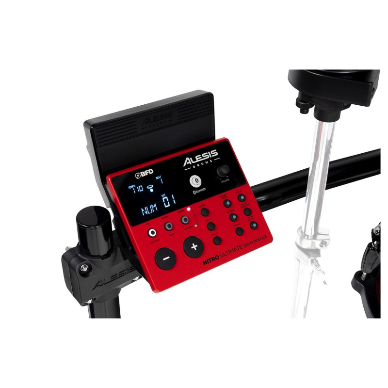 Il modulo della Alesis Nitro Ultimate offre 52 kit totali con 36 preset e 16 user, oltre allo streaming Bluetooth per suonare insieme a brani e basi direttamente dal telefono. Grazie al software BFD Player incluso, è possibile passare facilmente dalla pratica alla registrazione.