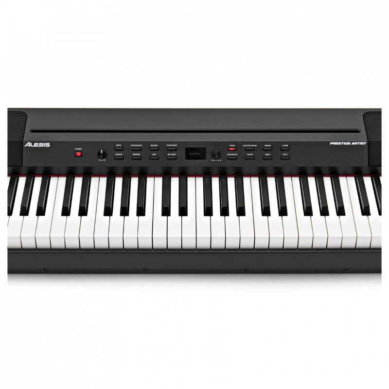 Per lo studio, l'allenamento o per il semplice divertimento la serie di pianoforti digitali Prestige ti dà la stessa sensazione di suonare un pianoforte, grazie alla tastiera a 7 ottave con pesatura graduale configurabile in 4 differenti risposte (Soft, Medium, Hard o Fixed) per adattarla alle tue esigenze esecutive. Per queste caratteristiche Alesis Prestige è uno strumento apprezzato anche dagli insegnanti e dagli allievi alla ricerca di un'alternativa economica per la didattica in stile classico. Perfetto sostituto per chi non può permettersi, vuoi per budget, vuoi per l'ingombro, un pianoforte acustico, l'Alesis Prestige risulterà ancor più versatile se consideriamo la sua selezione di 16 suoni multi-campionati, il sistema di amplificazione integrato da 50W, le due uscite per cuffia che disattivano il sistema di altoparlanti, le uscite audio bilanciate per il collegamento ad un impianto di diffusione (mixer o amplificatore) e la porta USB che consente di estendere all'infinito le possibilità sonore aprendo la strada all'utilizzo della tastiera in modalità MIDI con strumenti virtuali software per computer PC e Mac e con le applicazioni musicali per smartphone e tablet.