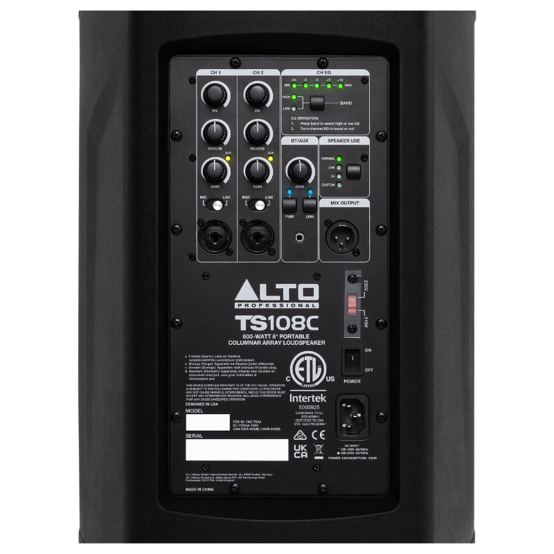 L’Alto Pro TS108C è un diffusore PA compatto a colonna, tutto-in-uno, progettato per offrire un suono chiaro e avvolgente senza la complessità dei tradizionali diffusori a cassa. Parte della serie professionale TrueSonic, questo modello eroga fino a 600 watt di audio cristallino in una torre sottile e facilmente trasportabile, rendendo il TS108C la soluzione ideale per musicisti itineranti, DJ e locali che desiderano prestazioni sonore elevate in uno spazio ridotto. Il TS108C integra un subwoofer da otto pollici, un mixer digitale a tre canali con riverbero e lo streaming Bluetooth, permettendo di collegarlo, accenderlo e suonare in pochi minuti. Che tu stia eseguendo un live, conducendo una lezione in palestra, DJando un evento o cercando un’opzione audio dal vivo per il tuo bar o ristorante, questo diffusore tutto-in-uno garantisce un suono professionale con la massima praticità. Con 600 watt di potenza, il TS108C riempie la stanza con un audio chiaro e potente, distribuito uniformemente grazie alla dispersione ultra-ampia. La combinazione di colonna array, subwoofer integrato, mixer digitale a tre canali, amplificatore e streaming Bluetooth offre una soluzione audio completa, compatta e senza complicazioni. La configurazione è semplice e veloce: non servono connessioni complesse o interfacce difficili da comprendere. Grazie al design intuitivo e alla funzionalità plug-and-play, bastano pochi minuti per essere pronti a suonare. La gestione tramite app e i profili DSP preimpostati (normale, live, DJ, personalizzato) consentono di scegliere rapidamente l’impostazione sonora più adatta a qualsiasi stile musicale o contesto dal vivo. Progettato per durare e facile da trasportare, il TS108C è compatto, resistente e pronto per i viaggi. Include una comoda borsa per le colonne e una maniglia integrata sul subwoofer, rendendo semplice il trasporto. Pronto per ogni occasione, il TS108C offre un’esperienza d’ascolto ottimale per te e per il tuo pubblico.