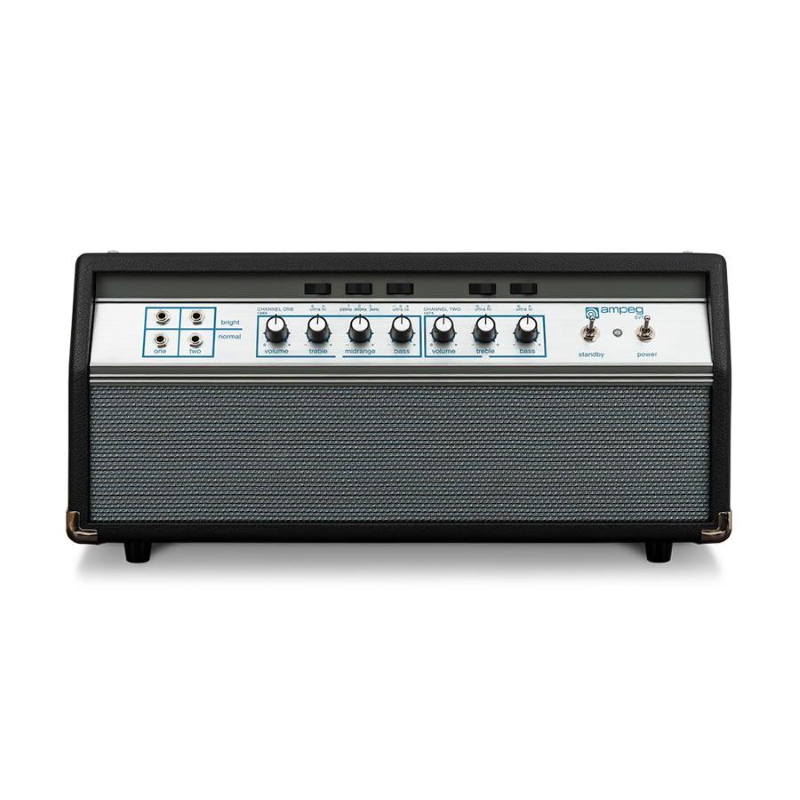 HERITAGE 50TH ANNIVERSARY SVT 240V EUAmpeg SVT 50th Heritage Sp.Ed. Classic Tube Bass Head; Channel one features the original 1969 Sound of a SVT, the second channel delivers the sound of the mid 70s SVT; 300 Watt, 2 / 4 ohms, wood casing, preamp: 2 x 12AX7, Driver: 1 x 12AX7, 2 x 12AU7, power amp 6 x 6550,adjustable gain, master, bass, treble, mids, parametric mids: 5 positions (220, 450, 800, 1600, 3000 Hz), ultra Hi/Lo boost, symetric di out, poweramp in, pre amp out, slave out, BIAS setting, dimensions (WxHxD): 61 x 29 x 33 cm, weight: 36,3 kg, Made in USA.