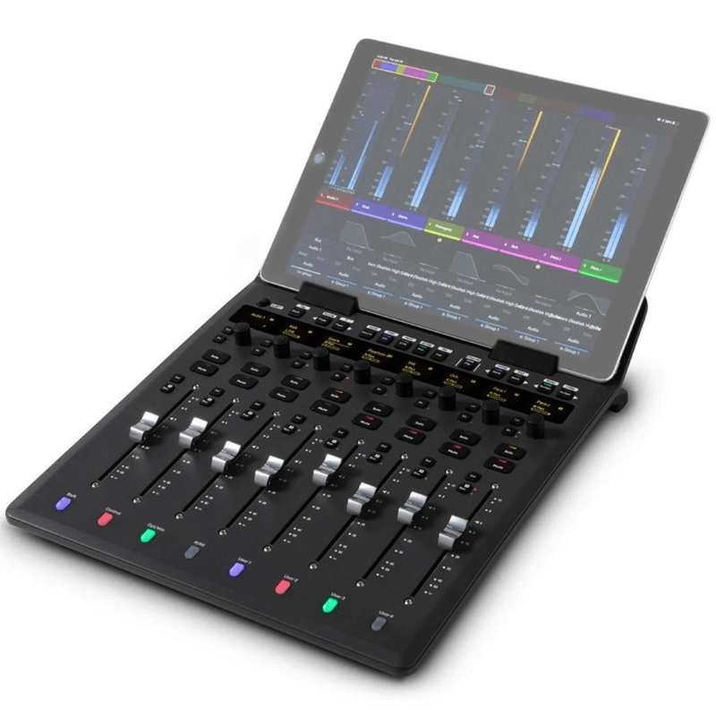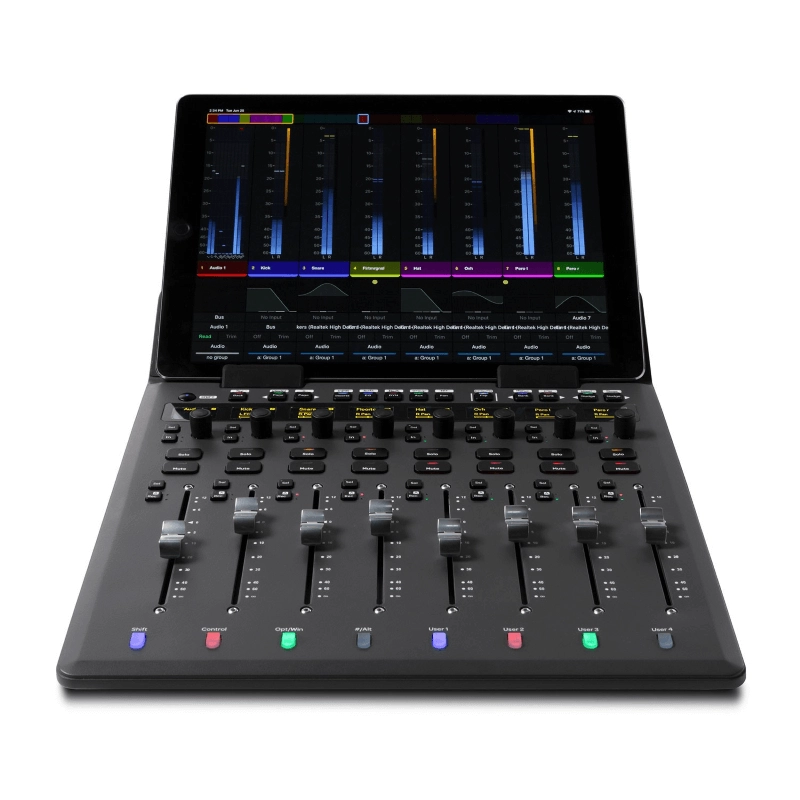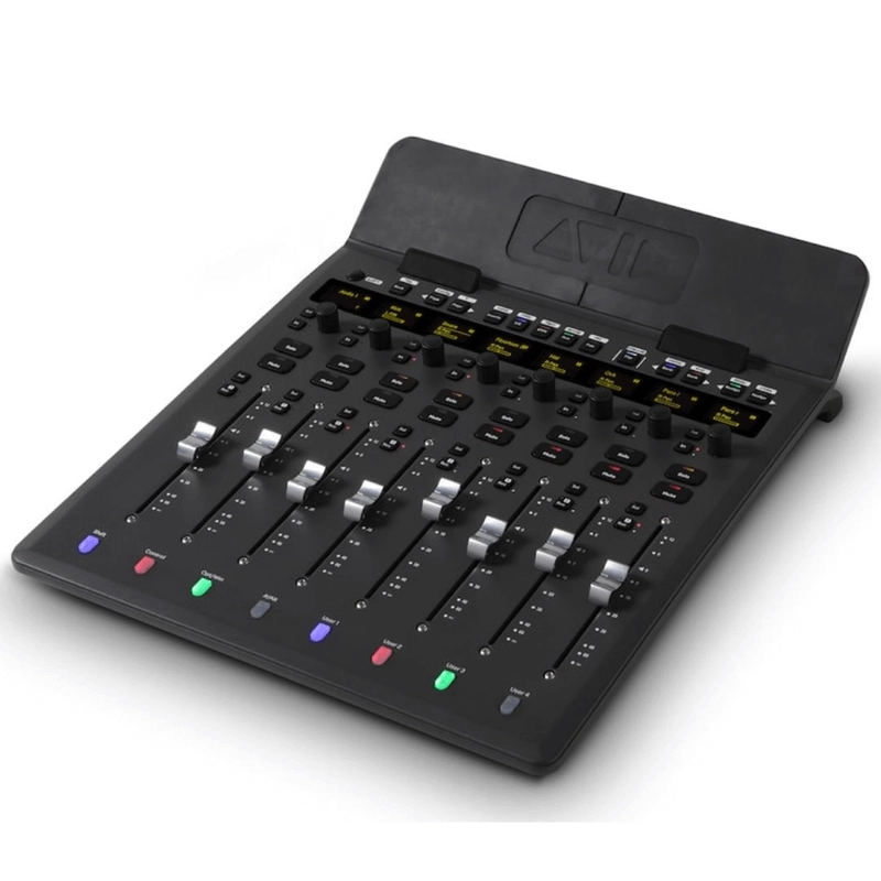 Display: 8 Display OLED ad hi-res, LED di stato e pulsanti track multicolor, meter del canale, monitoraggio, elaborazione, stato della traccia, modalità automazione, etc da Avid Control su tablet