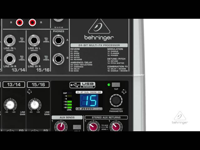 Il Behringer X2442 USB è il 'Big Daddy della serie USB con i suoi 10 state-of-the-art, ingressi microfonici XENYX, quattro canali stereo, quattro mandate Aux e quattro ritorni stereo Aux, e i compressori 'One Knob' su ciascuno dei canali mono. Altre caratteristiche disponibili in esclusiva per l' X2442 USB sono: quattro sottogruppi per una maggiore flessibilità di mixaggio, inserti Main (il percorso ideale per il collegamento di equalizzatori grafici o compressori / limiter) e otto Direct Out e Sub Outs per registrazioni analogiche.