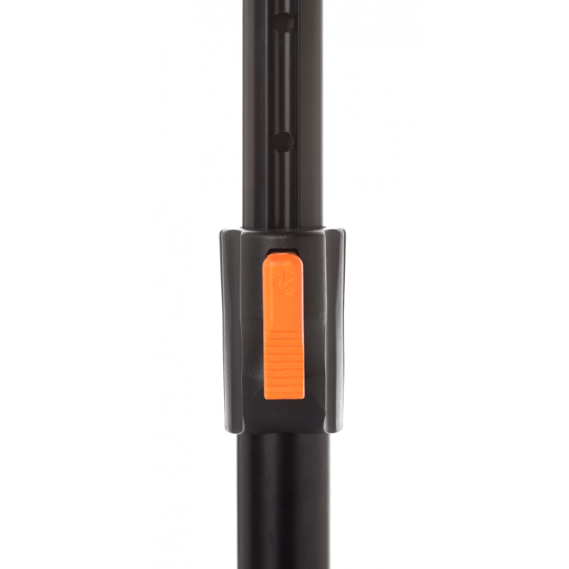 Supporto professionale in acciaio per monitor e casse. Ripiano di appoggio con protezione in gomma antiscivolo. Sistema di regolazione dell'altezza mediante pulsante automatico e manopola di sicurezza. Base triangolare con gamma di piedini intercambiabili per le diverse tipologie di pavimento Ripiano superiore 23x23 cm con gomma antiscivolo per garantire perfetta aderenza del monitor ed attenuazione delle vibrazioni. Base triangolare con lato 44 cm e kit di piedini intercambiabili
