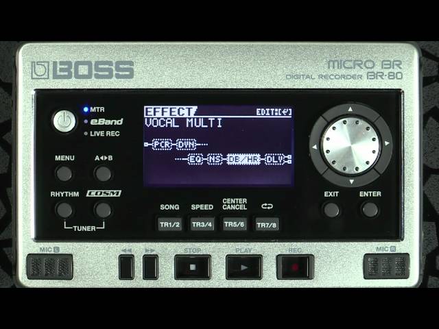 BOSS BR-80 è un registratore portatile cosi piccolo da poter stare in tasca ed è lo strumento ideale per le registrazioni e le performance dei chitarristi e non solo. Potrete creare, registrare e suonare la vostra musica grazie alle tre modalità di utilizzo presenti: "MTR" (Multi-Track-Recorder) a 8 tracce, "eBand" per le vostre backing tracks e infine Live Rec per registrare in tempo reale con il microfono stereo integrato. Tutte e tre le modalità possono essere sfruttate per le vostre esigenze. Potrete ad esempio registrare le vostre idee con la modalità Live Rec, quindi riprenderle in modalità MTR per le vostre produzioni musicali e successivamente utilizzarle come backing tracks dei vostri concerti in modalità eBand. BR-80 è uno strumento utilissimo per tutti i musicisti!