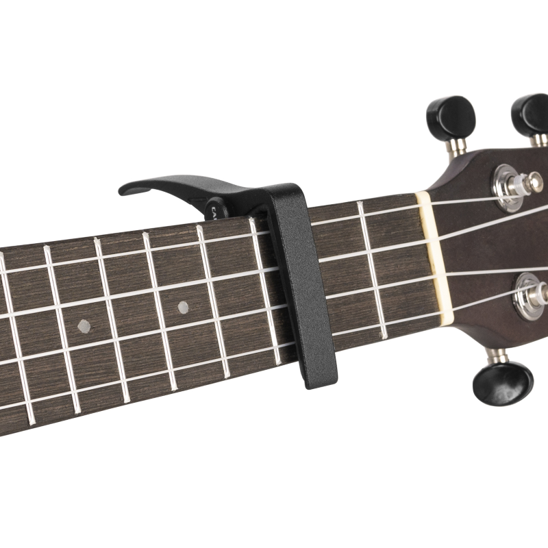 Un capotasto è uno strumento insostituibile per ogni suonatore di ukulele. Con esso è possibile, ad esempio, adattare l'intonazione dell'ukulele alla voce di un cantante senza dover ricorrere a complicate diteggiature barré. Affinché il capotasto funzioni bene, qualità e costruzione devono essere ottimali, come nel caso del Cascha Capo. La sua molla di alta qualità in acciaio di qualità fornisce una pressione ottimale per suoni brillanti e un'intonazione perfetta durante l'esecuzione. La stabile struttura in metallo si adatta perfettamente a ogni posizione ed è rivestita in silicone sulle superfici di contatto. In questo modo, il manico e le corde dell'ukulele sono perfettamente protetti. Il Cascha Capo può essere montato e smontato rapidamente e facilmente con una sola mano. Questo modello è perfetto per ukulele soprano, da concerto e tenore.