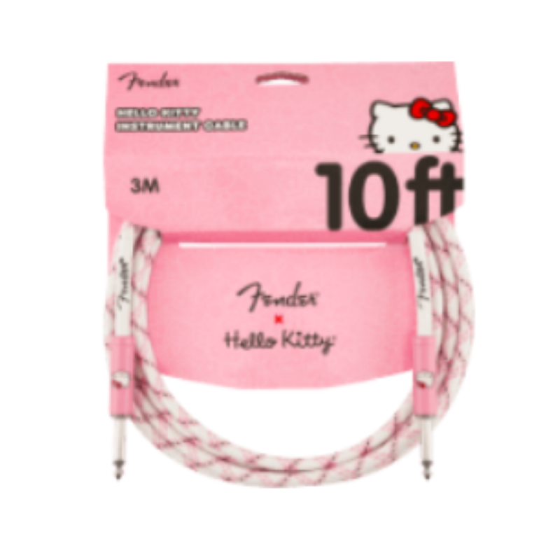 Featuring a woven jacket with Hello Kitty printed on the custom cable ends, the Fender® x Hello Kitty® instrument cable is constructed with durable nickel-plated connectors and spiral shielding for sonic transparency. This eye-catching cable is an essential accessory for every Hello Kitty fan’s music arsenal. Available in a 10’ length, this guitar cable is crafted from durable PVC and features straight 1/4-inch connectors on both ends. The 8mm wire jacket ensures reliable and solid construction, while the 23-gauge conductor improves signal path strength. Additionally, it includes 90% OFC spiral shielding for enhanced durability and nickel-plated connectors for reliable performance. Available exclusively on Fender.com.