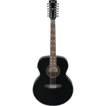 Le meccaniche pressofuse assicurano stabilità dell’accordatura anche con la maggiore tensione delle dodici corde, mentre la finitura Ebony Black conferisce allo strumento un’estetica elegante e professionale. La combinazione tra struttura jumbo, top in abete massello e sistema elettronico integrato rende questo modello adatto a contesti di performance dal vivo, registrazione e accompagnamento acustico con grande presenza sonora.