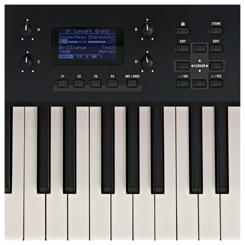 Tastiera: 88 Tasti pesati in legno con superficie Ivory Touch, meccanica Grand Feel (GF) con Let-off e Triplo sensore