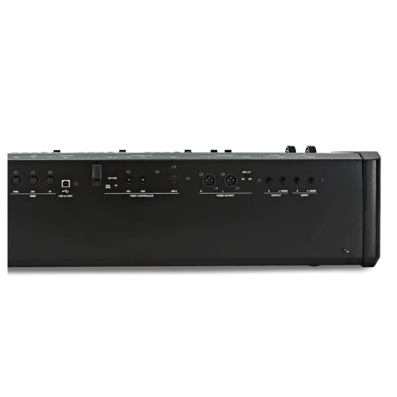 Connessioni: 1/4" Line Out (L/MONO, R), XLR OUT (L, R) con switch ground lift, cuffie, 1/4" LINE IN, MIDI IN, MIDI OUT, MIDI THRU, USB to Host, USB to Device, GFP-3, FSW, EXP, EXP TYPE sw, AC IN