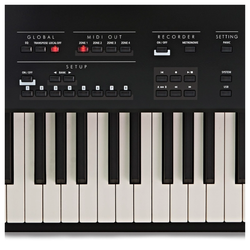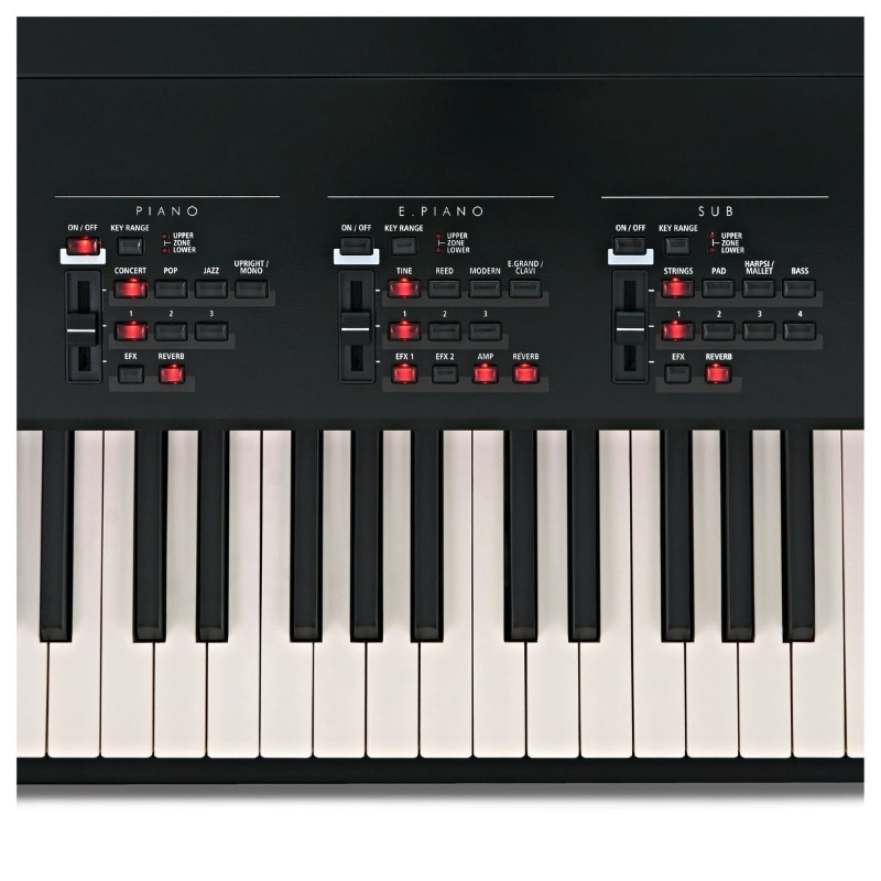 Altre Funzioni: Volume, Line In, Volume Piano, Volume E.Piano, Volume SUB, potenziometri di controllo A~D (assegnabili), Pitch Bend, Modulazione