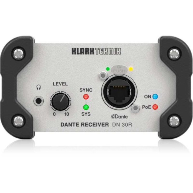 Il ricevitore audio Klark Teknik DN 30R Dante è un modo semplice e comodo per collegare altoparlanti attivi, amplificatori o mixer a una rete Dante. Le sue dimensioni compatte, la flessibilità delle sue caratteristiche e le opzioni di montaggio lo rendono la soluzione di rete perfetta per spazi di ospitalità ed eventi, performance e installazioni audio e molto altro ancora. Il DN 30R può ricevere segnali da qualsiasi trasmettitore Dante tramite un cavo CAT5e o CAT6 standard. Questa stessa connessione può essere utilizzata per alimentare il dispositivo tramite Power over Ethernet o tramite un ingresso CC a 24 Volt.