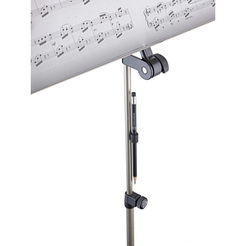 La pratica matita con magnete di tenuta dall'estrema forza di attrazione, si attacca a tutti i leggii e supporti per orchestre con superfici magnetiche. Adatto a tutte le matite con un diametro da 6 a 7,5 mm. - Peso: 0,01 kg