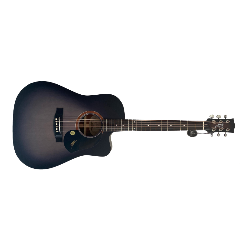 Costruita con fondo e fasce in blackwood della Tasmania massello, tavola armonica in abete Sitka massello di grado A, manico in acero del Queensland, tastiera e ponte in ovangkol.