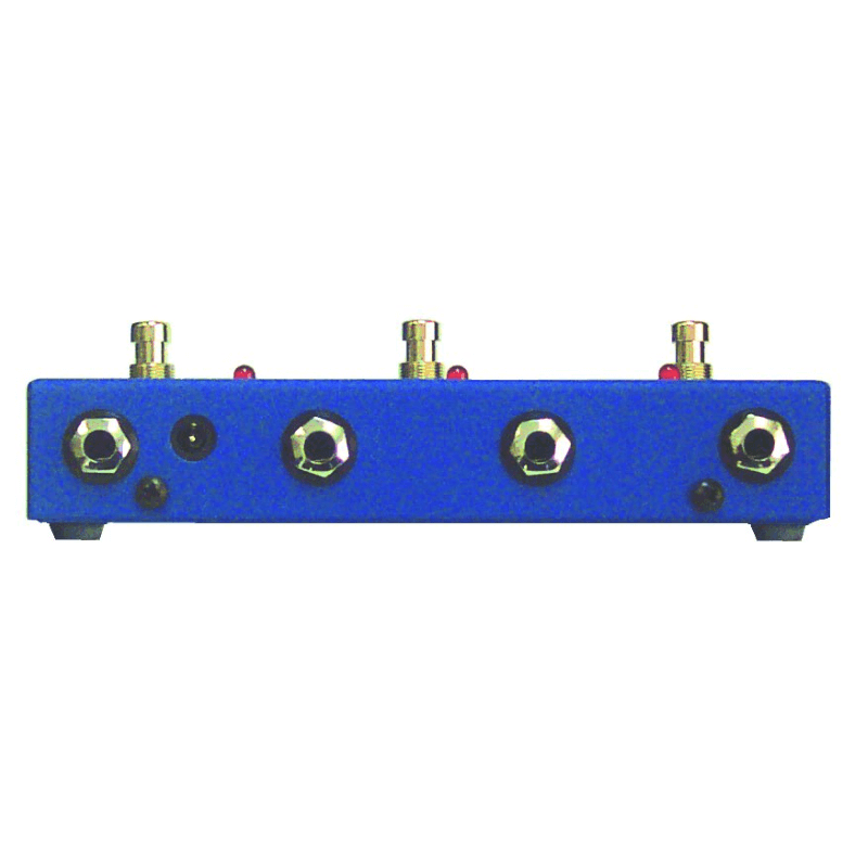 Selettore/combinatore per collegare 3 chitarre ad 1 amplificatore o viceversa, con possibilità di selezionare o combinare l'ingresso con le 3 uscite, dotato di 3 interruttori a pedale con relativi LED, vano per pila da 9V (necessaria solo per alimentare i LED), alimentatore escluso.