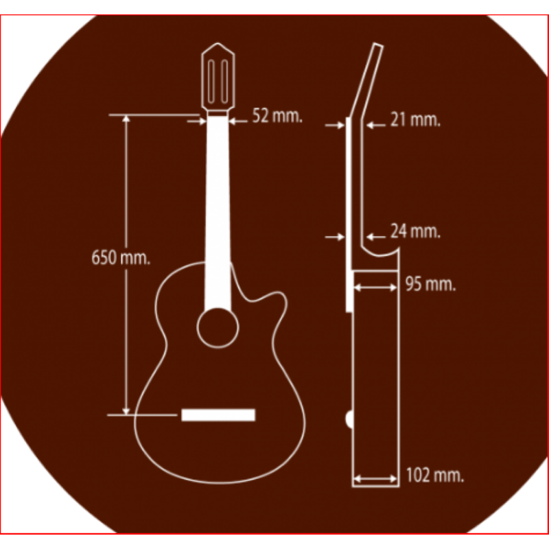 Solid spruce top,mahogany back and sides, one maple binding, Indian rosewood fingerboard - Matt