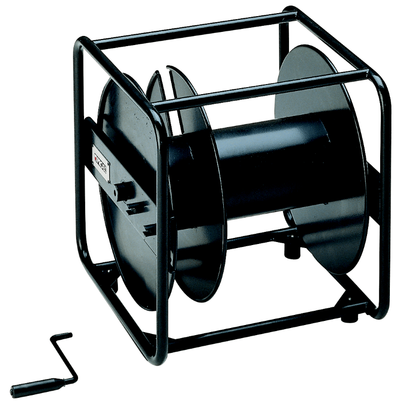 Avvolgicavo in metallo verniciato ad alta resistenza, manovella rimovibile, freno a frizione regolabile, flangia separatrice per alloggiare il terminale del cavo e i connettori in compartimenti separati.