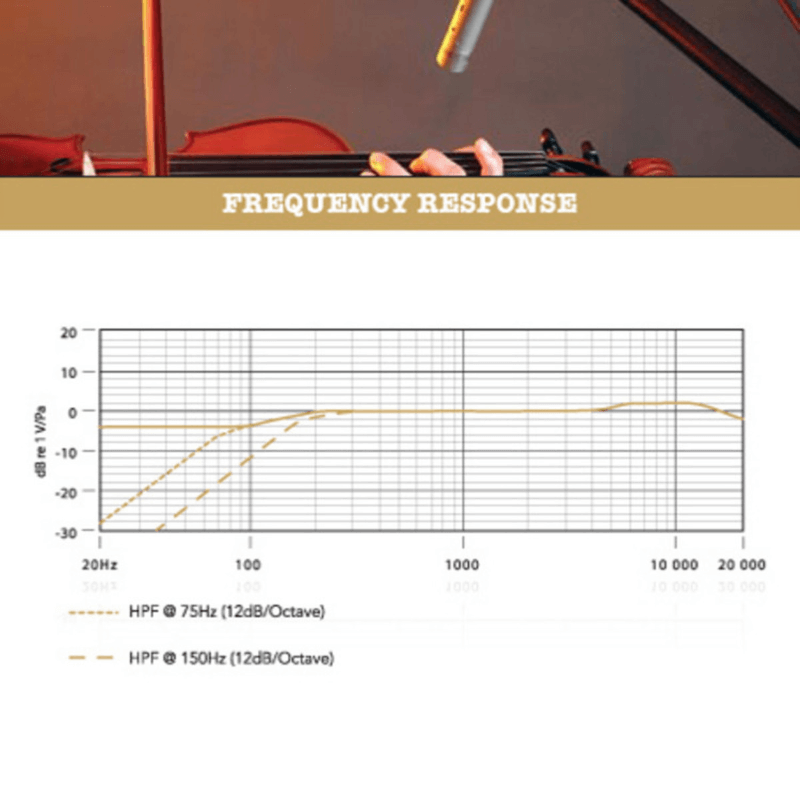 Sensibilità: -38.0dB re 1 Volt/Pascal (12.60mV @ 94 dB SPL) +/- 2 dB @ 1kHz