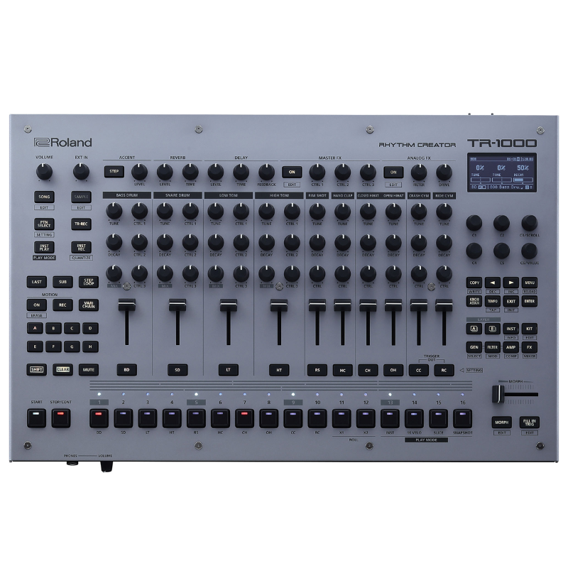 Il Roland TR-1000 porta l’analogico in una nuova era: per la prima volta in oltre quarant’anni, una drum machine Roland integra un vero generatore analogico. Il TR-1000 contiene 16 circuiti ispirati alle leggende TR-808 e TR-909, ricreati fedelmente con componenti moderni e una progettazione attenta, offrendo i suoni analogici classici Roland con nuove possibilità di modulazione e dinamica più ampia. Il TR-1000 combina un cuore analogico con potenti generatori digitali, tecnologia ACB avanzata, percussioni FM, sintesi VA e una libreria di campionamenti PCM che permette al TR-1000 di esplorare ritmi e texture uniche. Con 64 GB di memoria interna, il TR-1000 include 2.000 sample già pronti e lascia 46 GB liberi per registrazioni, modifiche e importazioni personali.