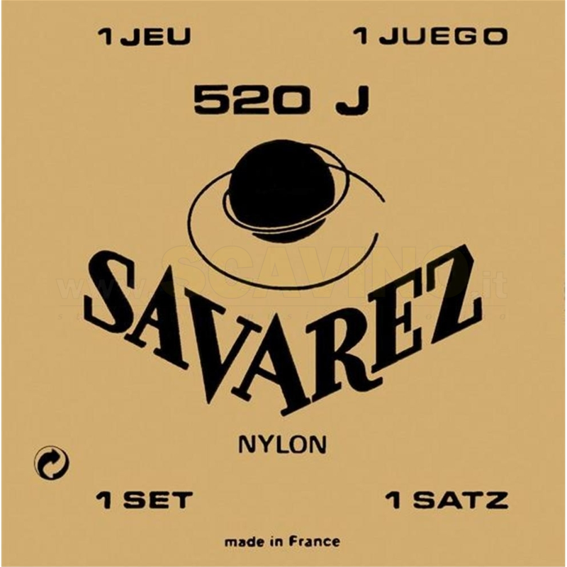 Set di 6 corde per chitarra classica YELLOW CARD (confezione Gialla), tensione forte.Le corde di questa serie hanno una tensione leggermente superiore a quella dei set di corde RED CARD (confezione Rossa).Queste corde offrono una maggiore resistenza sotto le dita ed esercitano uno sforzo maggiore sullo strumento e soprattutto sulla tavola armonica.Sono adattatte per strumenti regolati di conseguenza.Il set è composto da:- Corde Acute in Nylon rettificato.- Corde Basse con avvolgimento Tradizionale.Beneficiando delle scoperte più recenti, le corde per chitarra classica, realizzate all'inizio in budello (corde acute) e rame avvolto in seta (basse), si sono evolute con l'uso del nylon monofilamento per le tre corde acute e con avvolgimento in rame placcato argento per le tre corde basse.Ricerche avviate nel 1946 hanno condotto, passo dopo passo, alla realizzazione dei set di corde Savarez Confezioni Rossa/Gialla/Bianca, che hanno segnato il cambiamento a favore dell'uso del nylon. Le nuove tecnologie e la maestria impiegata nella produzione e trattamento del nylon preservano le qualità sonore del budello e dell'avvolgimento in seta, conferendo alle corde Savarez potenza, chiarezza, longevità e sustain. Accordatura stabile e possibilità di scegliere fra tre tensioni: Bassa (Low), Alta (High), Molto Alta (Very High).La collaborazione costante di chitarristi di talento come Alexandre Lagoya, Ida Presti e gli spagnoli Cespedes e Aliques nel creare le corde Savarez, soprattutto quando il marchio era sconosciuto, sono stati decisivi. Da allora i chitarristi e i liutai più famosi si sono uniti a Savarez nell'innovazione.