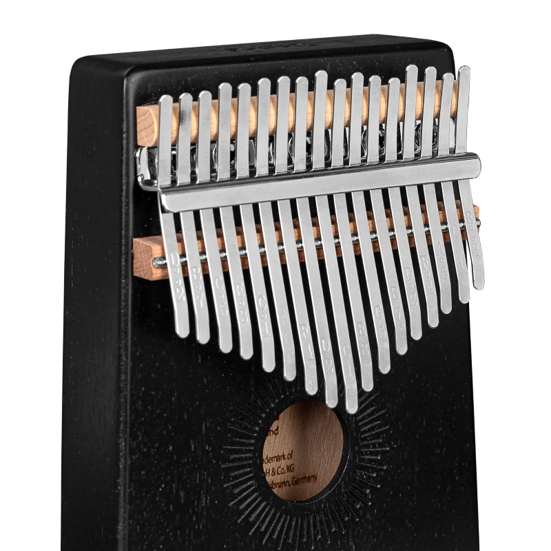 La Kalimba Sela 17 in nero è realizzata in legno di mogano di alta qualità. Il corpo amplifica le basse frequenze e produce un suono pieno, chiaro e caldo con una risonanza affascinante. I tasti in metallo di alta qualità sono accordati in Do maggiore e hanno un'estensione da Do´ a Mi´´ (Do4 – Mi6). Le note stampate sui tasti rendono la Kalimba adatta sia ai principianti che ai musicisti più esperti.