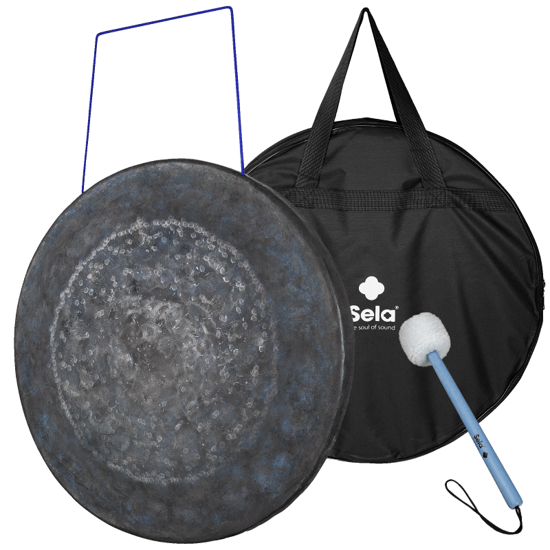 I gong Sela Chau sono autentici capolavori realizzati a mano in Cina con una speciale lega di bronzo. I gong Chau hanno una forma tradizionale con il bordo piegato all'indietro e sono disponibili nelle misure 50, 60, 71, 81 e 91 cm. Maggiore è il diametro, più profondo e voluminoso è il suono prodotto quando vengono percossi. Ogni modello è dotato di un battente in faggio con testa rivestita in pile e di una pratica borsa per il trasporto con cerniera.