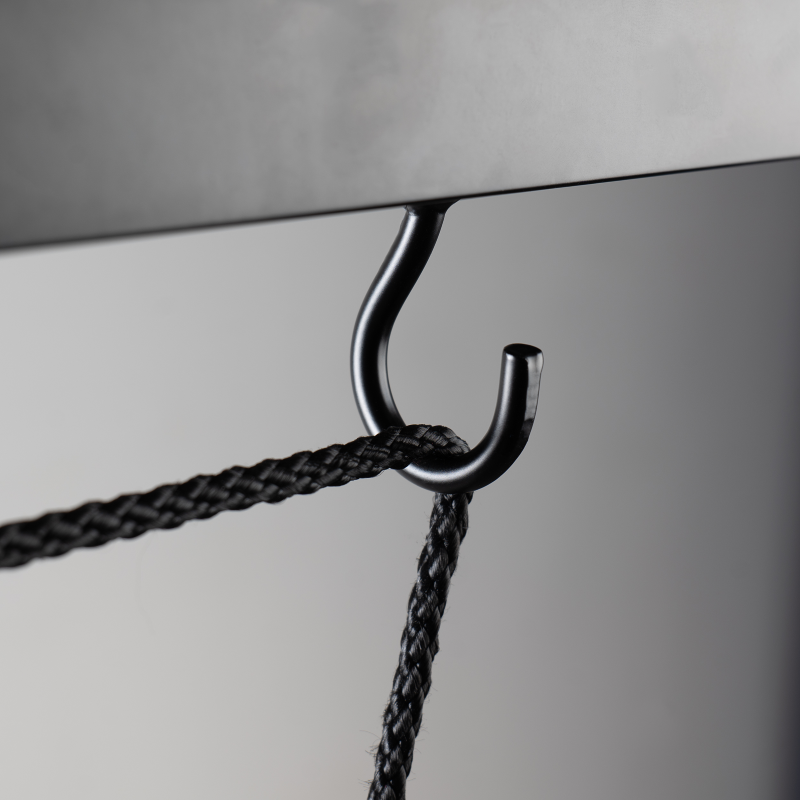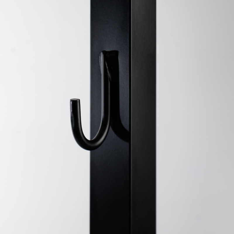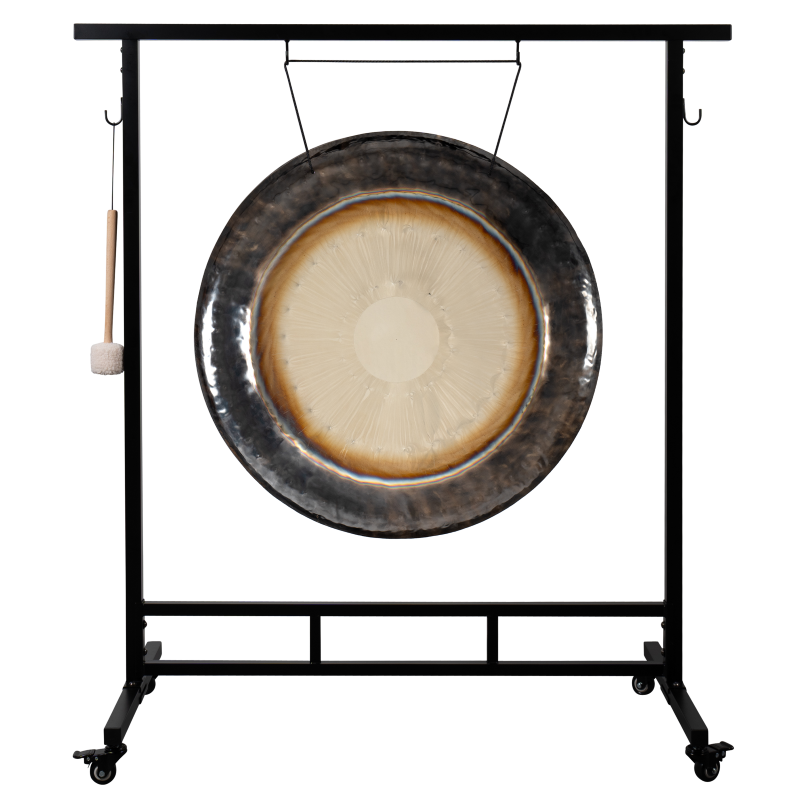 Elegante e moderno, il telaio rettangolare mette in risalto il gong e gli conferisce una solida stabilità. Il supporto in acciaio verniciato a polvere nero permette al gong di oscillare liberamente, creando un'esperienza sonora straordinaria. La struttura in acciaio multi-rinforzato sostiene il gong in modo affidabile, anche quando oscilla. I freni di bloccaggio su due delle quattro ruote dei piedini mantengono il supporto in posizione. I ganci sui lati esterni destro e sinistro offrono la possibilità di appendere attrezzature come una mazza.