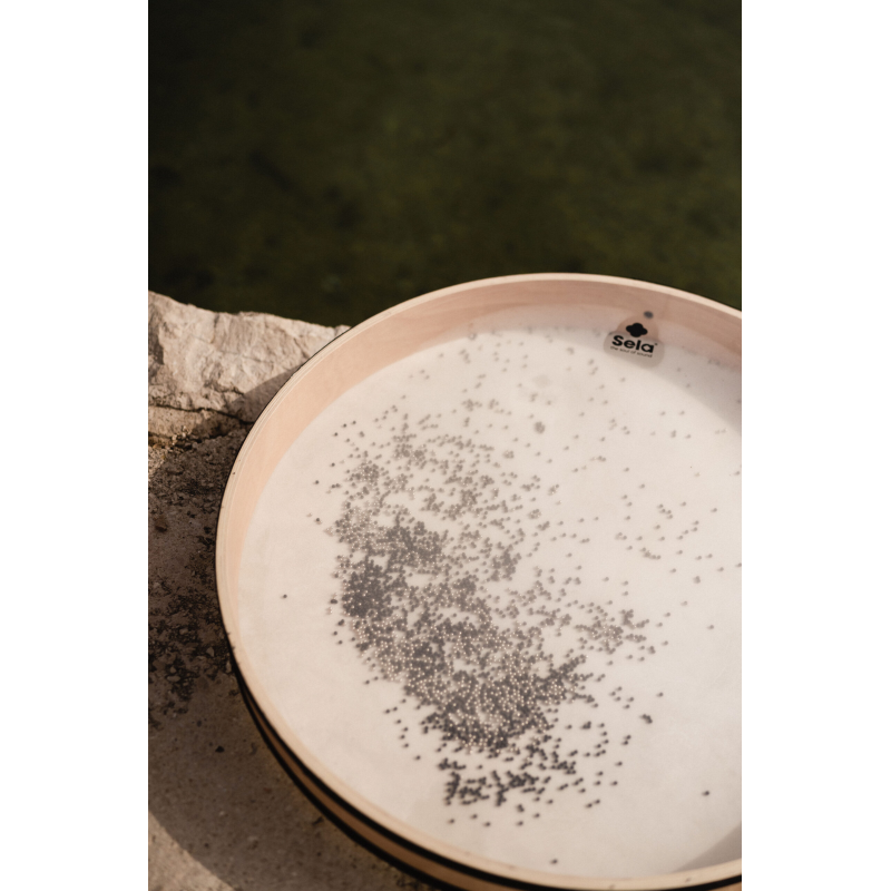 I Sela Ocean Drum sono disponibili in cinque diverse dimensioni e presentano un design innovativo. Sono costituiti da un telaio rotondo in legno di faggio che, a differenza di molti altri tamburi a mano e a cornice, è rivestito su entrambi i lati. All'interno dell'Ocean Drum si trovano numerose piccole sfere di metallo e plastica che danzano sulla pelle quando il tamburo viene mosso, creando effetti sonori che ricordano le onde dell'oceano. Poiché un lato è rivestito con una pelle naturale e l'altro con una pelle di plastica, il Sela Ocean Drum può produrre due timbri completamente diversi. Grazie a un'apertura richiudibile nel telaio, la quantità di perline e quindi il volume e la risposta del tamburo possono essere regolati individualmente.