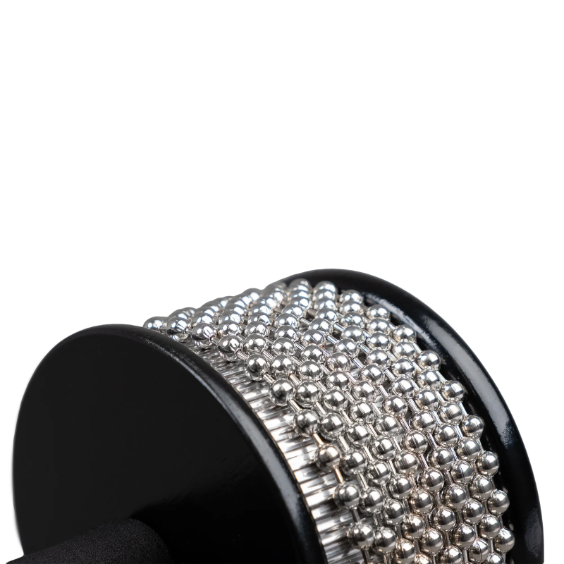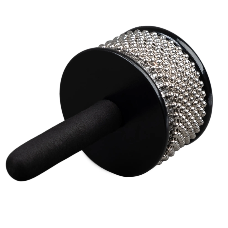 La cabasa è un affascinante strumento a percussione originario dell'America Latina. Nella sua forma originale, il sonaglio era costituito dal corpo di una zucca ricoperto da una rete di semi o perline. La Sela Cabasa, invece, si basa su un design moderno con una testa cilindrica e una lamiera profilata circostante. Questa lamiera è a sua volta ricoperta da dieci catene di perline metalliche aderenti, che scorrono sulle scanalature della lamiera quando vengono mosse, producendo suoni fini e ritmati.