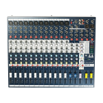 La configurazione prevede 12 canali mono Mic/Line con ingressi XLR e jack bilanciati, affiancati da ingressi stereo linea dedicati. Ogni canale mono è dotato di equalizzazione a 3 bande con sezione medi semi-parametrica, che consente interventi mirati sulla risposta in frequenza, oltre a filtro passa-alto per la riduzione delle basse frequenze indesiderate. Il mixer integra un processore effetti digitale Lexicon con una selezione di preset professionali, tra cui riverberi, delay e modulazioni, gestibili tramite invio effetti per canale e controllo globale.