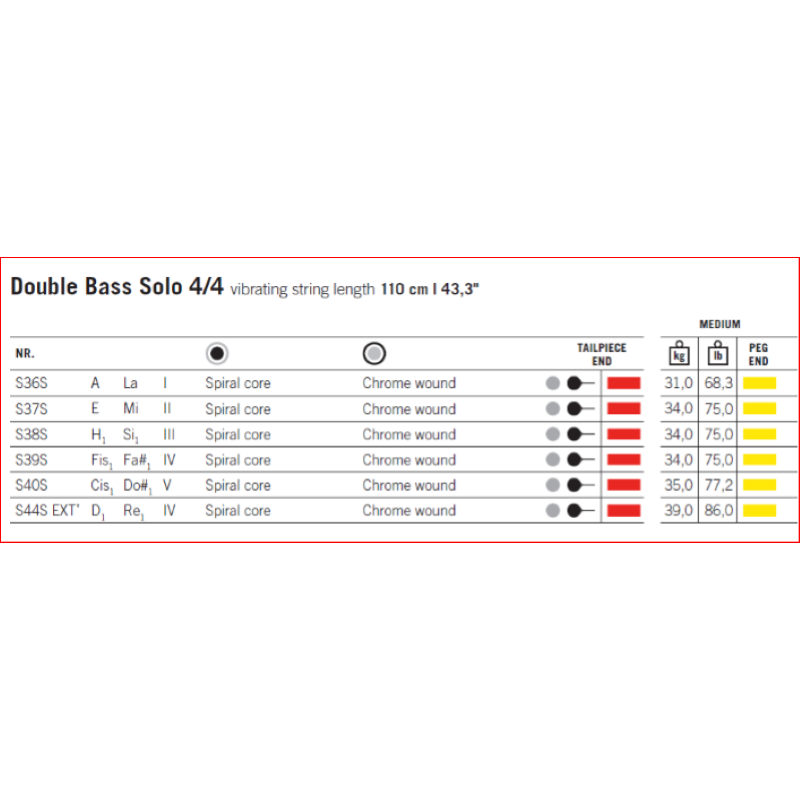 S43 Thomastik SPIROCORE per contrabbasso SOLO 4/4 Medium (S36S, S37S, S38S, S39S)