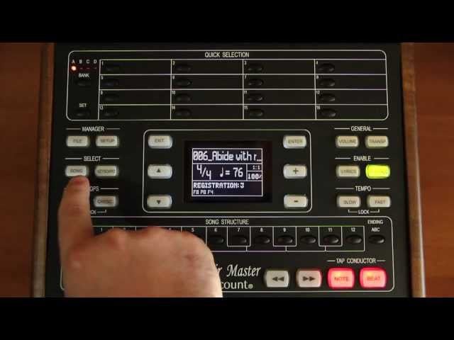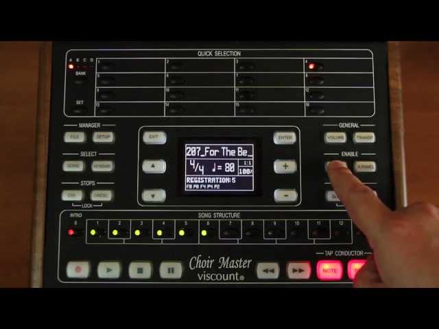 Grazie ai pulsanti con illuminazione intelligente ed al display grafico, Choir Master è utilizzabile proficuamente fin dal primo approccio. I brani possono essere richiamati mediante digitazione del loro codice numerico oppure scegliendoli nell'elenco alfabetico a display. In alternativa la matrice di tastini, denominata "Quick Selection", consente di richiamare, con un unico gesto, un brano preassegnato al tastino stesso. Inoltre, grazie alla esclusiva funzione Smart Hymn Search, è possibile selezionare un brano suonandone un frammento sui tastini Song Structure, i quali, quando necessario, coincidono con le note dell'ottava musicale.